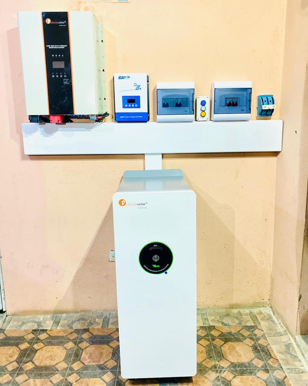 Case 6: Dominican Republic – 8 kW System (Felicity Solar) 8 kW Hybrid Inverter 10 kWh × 2 LiFePO₄ Batteries PV Combiner Box Battery Combiner Box