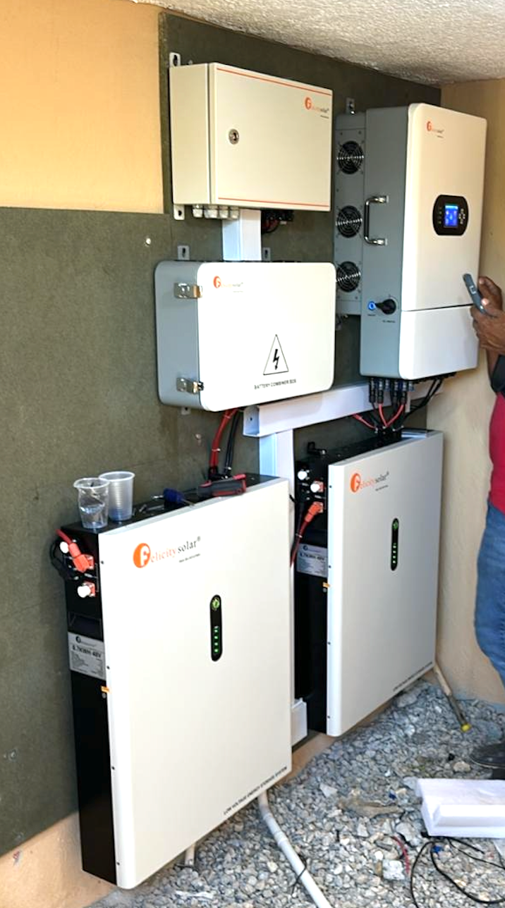 Case 13: Dominican Republic – 16 kW System Felicity Solar 15 kWh × 2 LiFePO₄ Batteries Deye 8 kW × 2 Hybrid Inverters